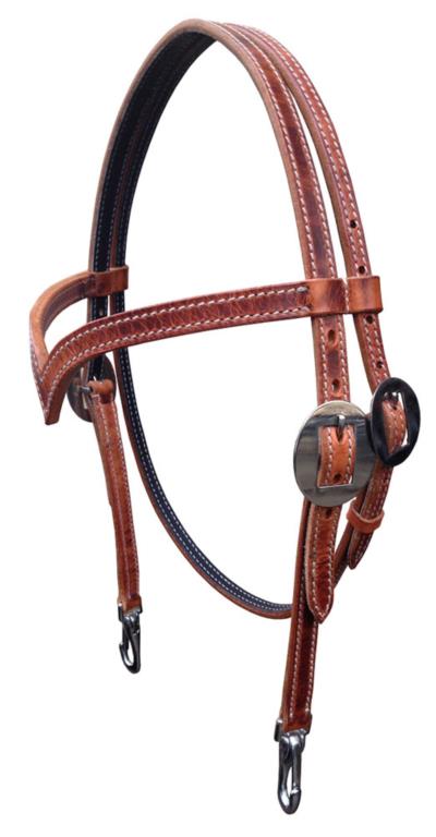 Dieses hochwertige Arbeitskopfstück wurde aus feinstem Harness Leder gefertigt in Kentucky, USA gefertigt. Es hat eine wunderschöne, goldbraune Farbe. Während des Herstellungsvorganges wurde es mit besonderen Ölen behandelt wodurch es Schmutz und Schweiss abweist.